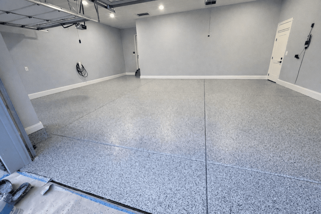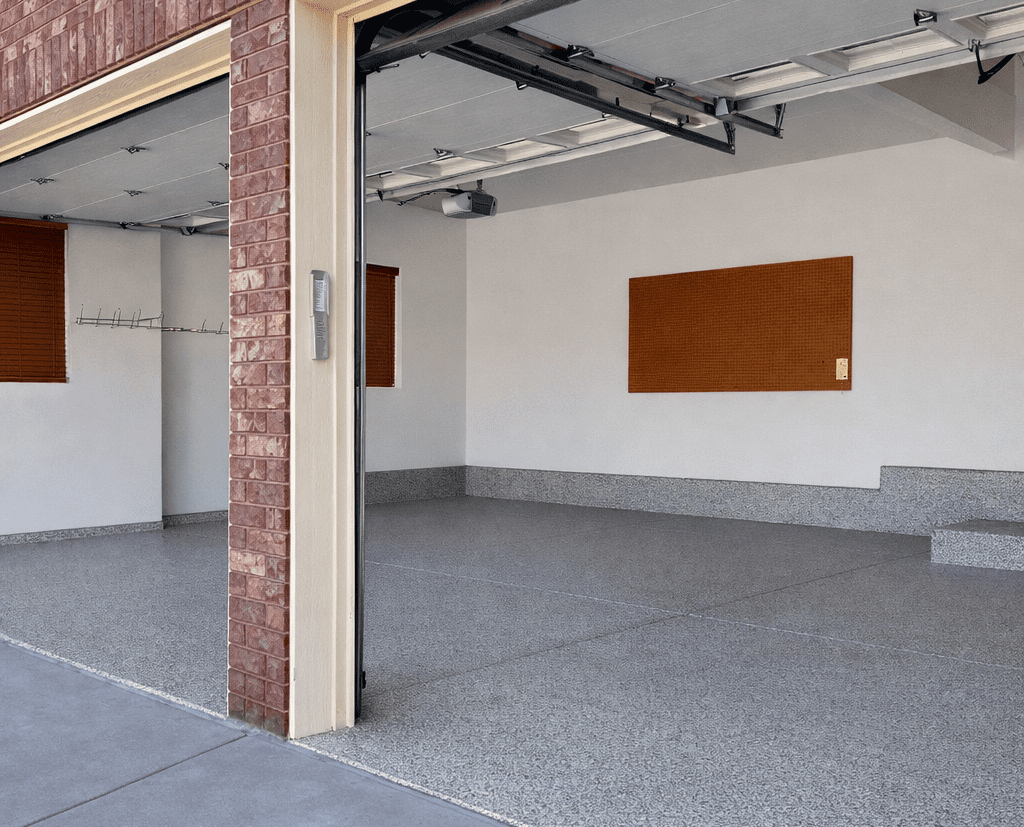 Your garage handles hot tires, oil spills, dropped tools, and everything in between. Our coatings create a tough, damage-resistant surface that wipes clean and never stains. Choose from flake and metallic finishes to turn dull gray concrete into a showroom-quality floor that boosts your home’s value.